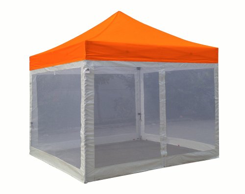 Canopy top:400 Denier Polyester,Water Resistant,100% UV Protection,Fire Resistant: CPAI-84/ULC S109 & NFPA 701 Flame Retardancy Standards.canopy size:10x10Feet. weight:8LBS.Wheeled bag with 2.7" wheels,The Best design and easy to handle even on rough ground.Frame size:10x10Feet / weight:64LBS. Heavy duty steel Construction.1 1/4 Inches leg and 1 x 1/2 Inches Truss Bar. Full Truss Design,Adjustable Height,No Tools Necessary for Setup..Eurmax Standard Canopy (10x10feet) Includes:Canopy Top, Canopy Frame,Four(4) Screen Walls,Awning,Roller Bag.Four(4)Stakes.No loose parts; No tools required..4 zippered white screen sidewalls with one entry door,Bottom and Side Lining - Polyethelene..Screen Tent With Floor Eurmax Standard Ez Pop up Canopy with Four (4) Screen Walls and Wheeled Bag Bonus Awning (10x10ft, Orange Top with White Screen Features.